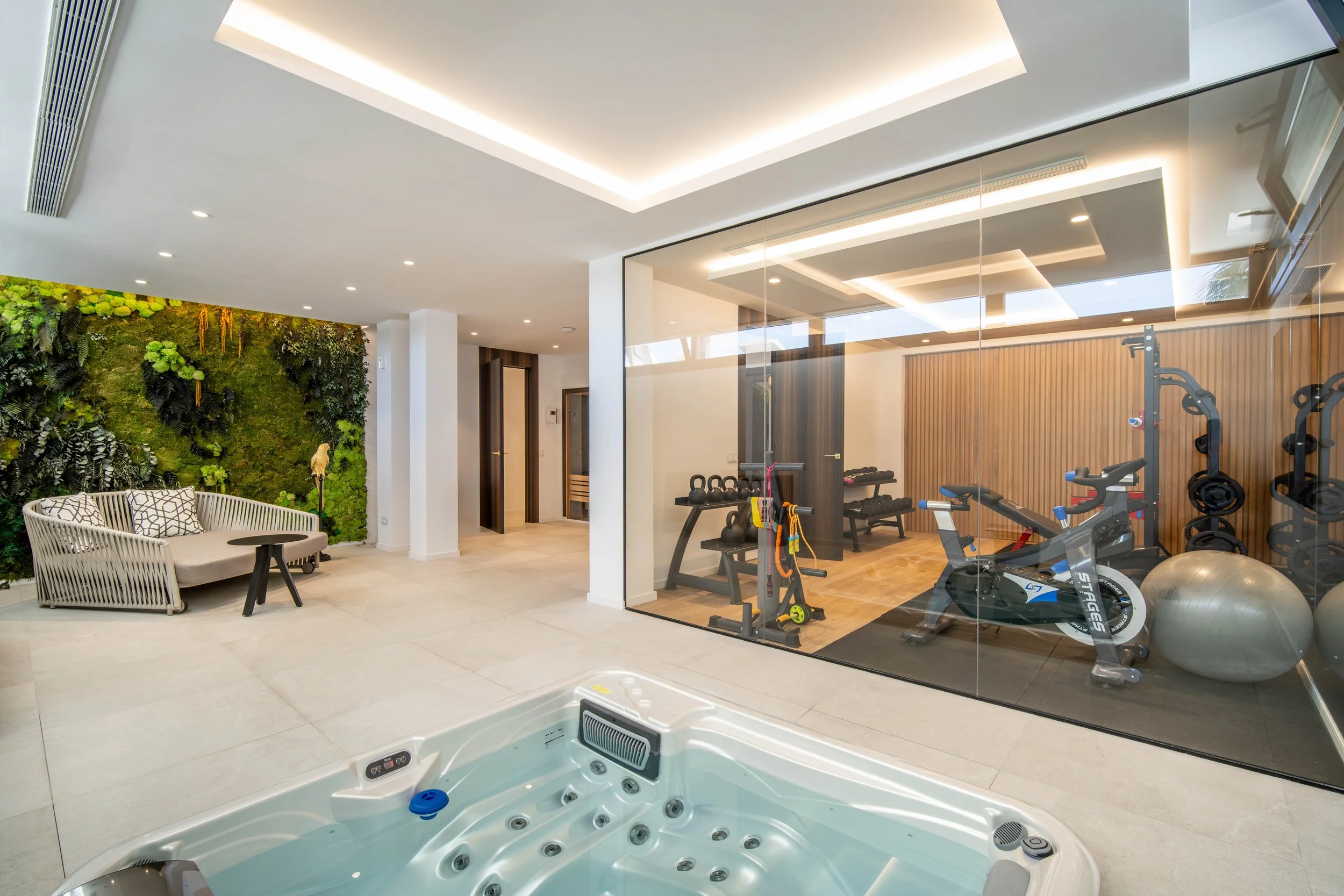 Spanning across 3 levels, the upper level is reserved for the bedrooms and illustrious master bedroom. All bedrooms have been designed to maximise comfort as well as remaining stylish in design. The master bedroom benefits from sweeping views and terrace. The master bathroom is an added plus to the space with a stunning stand alone bath tub and marble accents across. Villa Alfma has everything you will ever need, with the lower level of the property being reserved for the incredible amenities which include an astonishing entertainment room with a bespoke pool table, wine bodega, cinema and custom bar. There is also a home gym and a lovely sauna. A television room is also located on this level for added entertainment. Underfloor heating runs throughout the property for an extra layer of convenience and luxury.