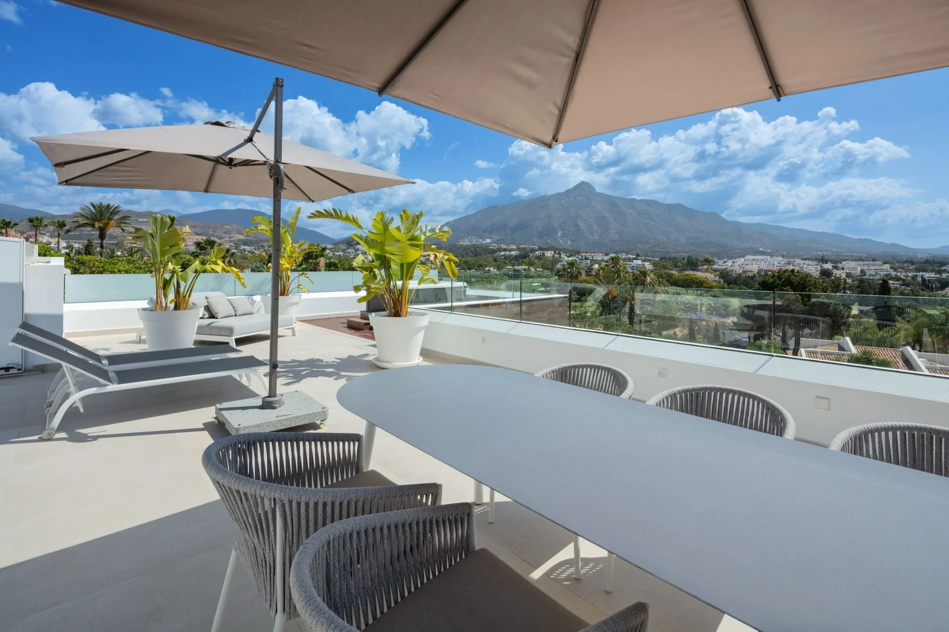 Villa Camellia’s infinity pool that overlooks the La Concha mountain is perfect for dips during warm summers. The ample plot size and manicured gardens create an ideal atmosphere that provides privacy and tranquillity. The interiors have been curated to display fantastic furniture and finishings, creating an aesthetic yet practical living space. The open-plan living, dining and kitchen have direct terrace access, allowing to maximise indoor-outdoor living. Each bedroom has been elegantly designed to not only serve as a fashionable space but one that exudes comfort, acting as the perfect space to unwind and relax. With its prime location, fantastic interiors and ample terraces, Villa Camellia will impress all who visit.