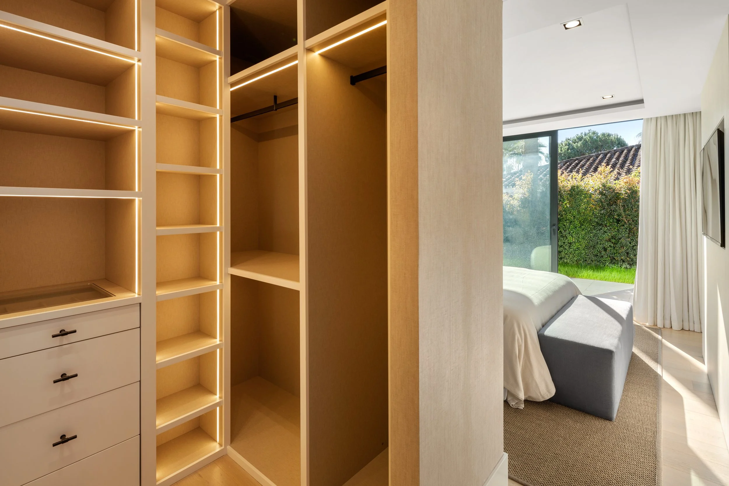 Inside, the villa exudes sophistication and attention to detail. The bespoke kitchen is a culinary haven, combining aesthetics with functionality, featuring state-of-the-art appliances, elegant marble and wooden accents, and a luxurious wine fridge. All bedrooms, including the lavish master suite, are thoughtfully designed for modern comfort, each boasting its own ensuite bathroom and walk-in closet. The master bedroom, a sanctuary of opulence, treats residents to breathtaking garden views, a walk-in wardrobe, an office space and a master bathroom complete with a stand-alone shower, bathtub, and double vanity. Situated in the prestigious Golf Valley, Oslo 79 enjoys proximity to upscale amenities, 5-star golf courses, and the vibrant hubs of Puerto Banus and Marbella, offering an unparalleled lifestyle of luxury and convenience.